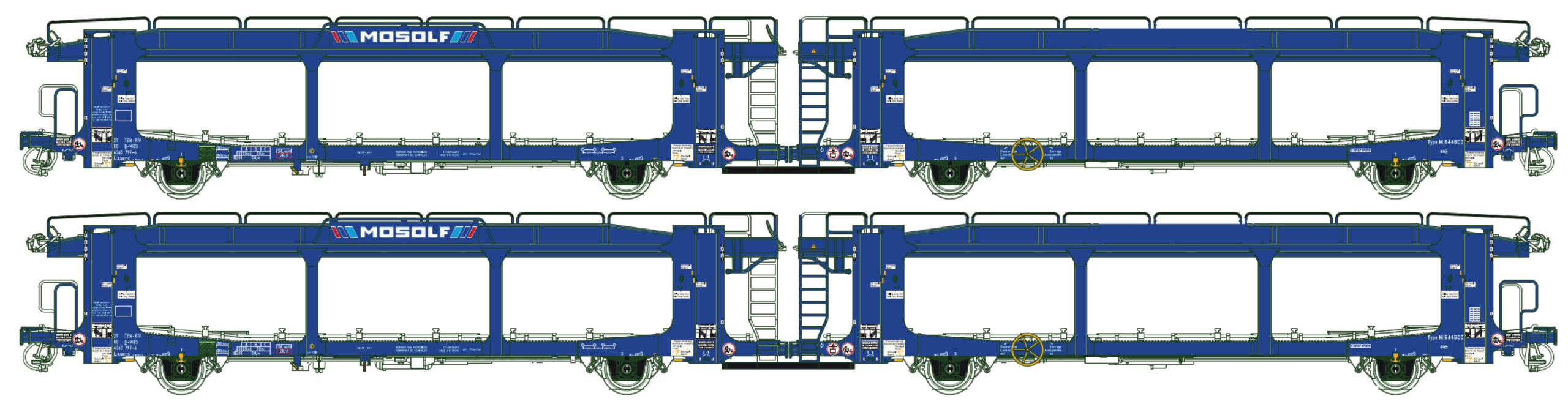 LS-Models 32154 -Spur H0 2.tlg. Set Doppel-Autotransportwagen Laaers der MOSOLF, Ep.VI, DC
