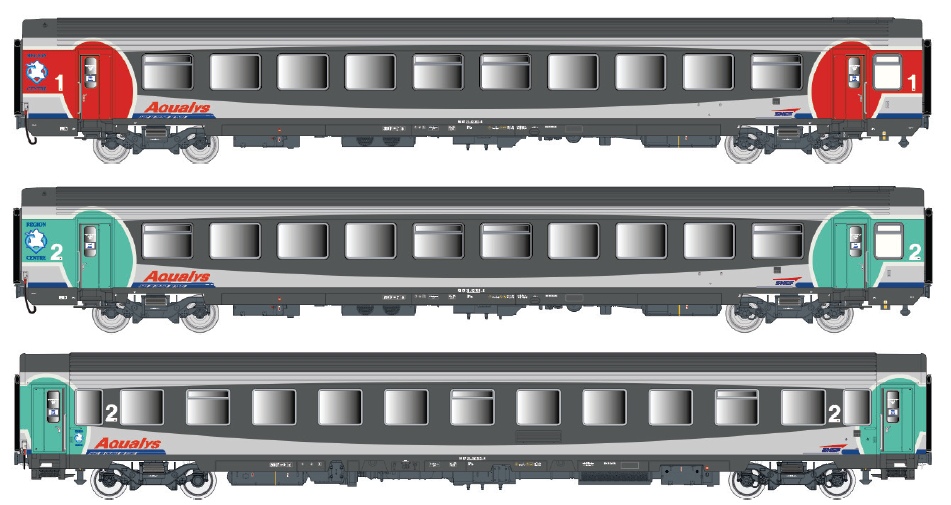 LS Models 40720 - Spur HO  SNCF Reisezugwagen-Set Corail VTU SNCF/TER Aqualys, Ep. V-VI, 3-tlg. DC