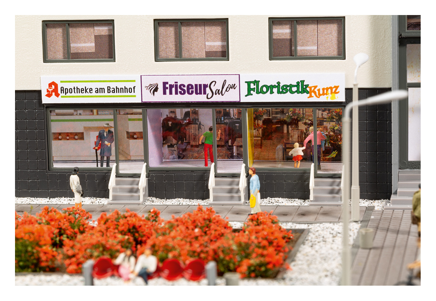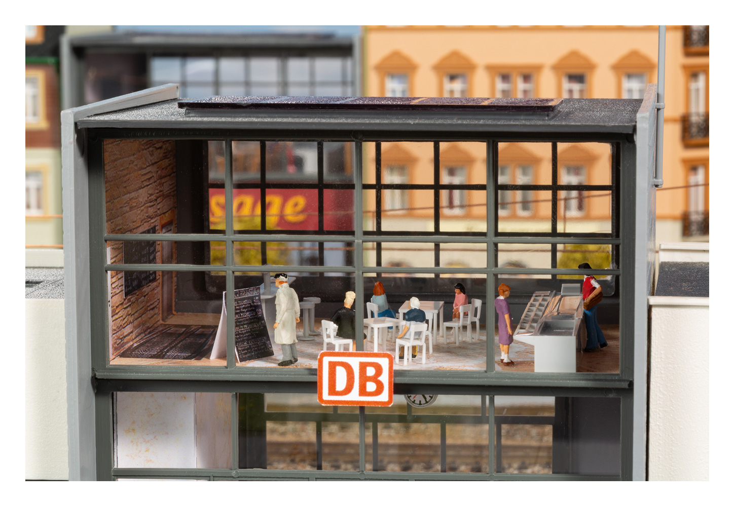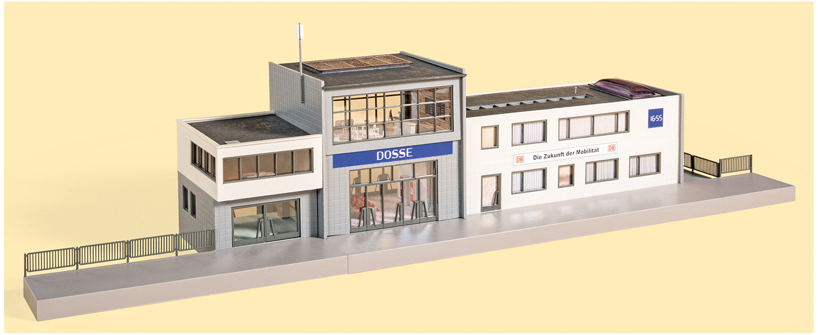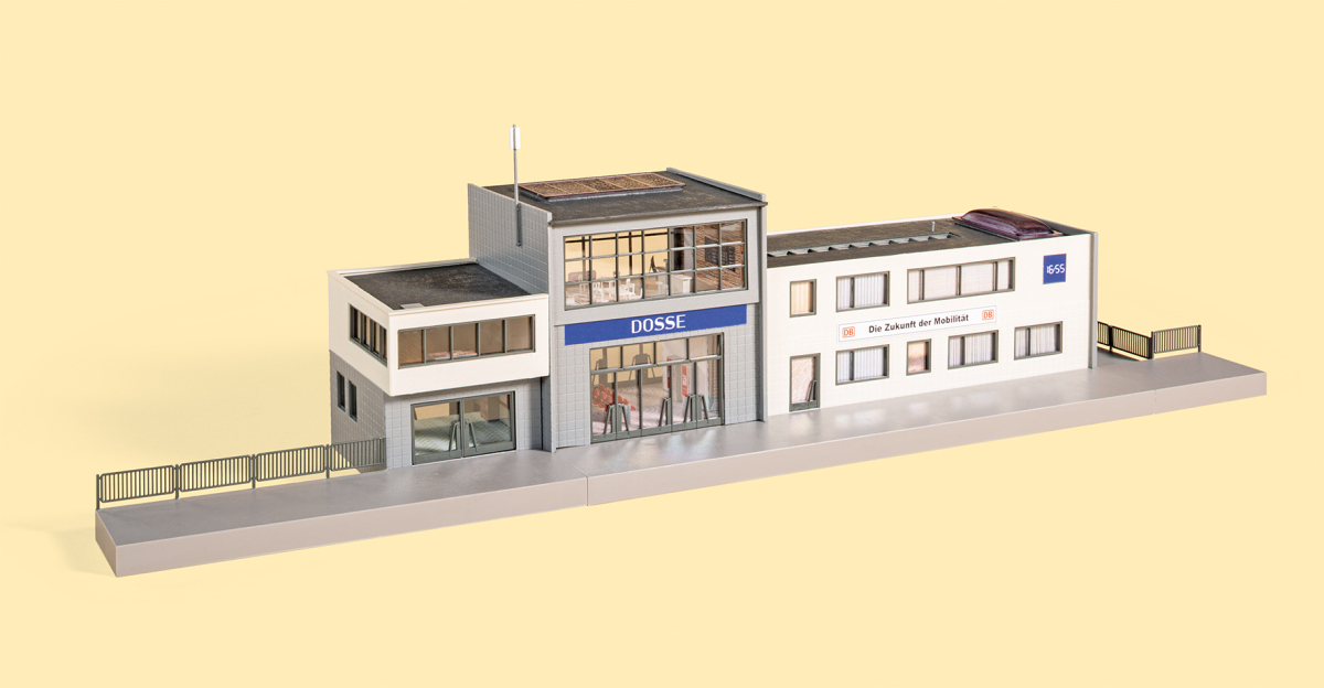 Ein weiterer Blickfang ist die angebaute Stellwerksnachbildung, die funktional wie optisch überzeugt. Passend dazu empfehlen wir das separat erhältliche Stellwerk „Dosse“ (Art. 13358), das die Szenerie sinnvoll ergänzt.