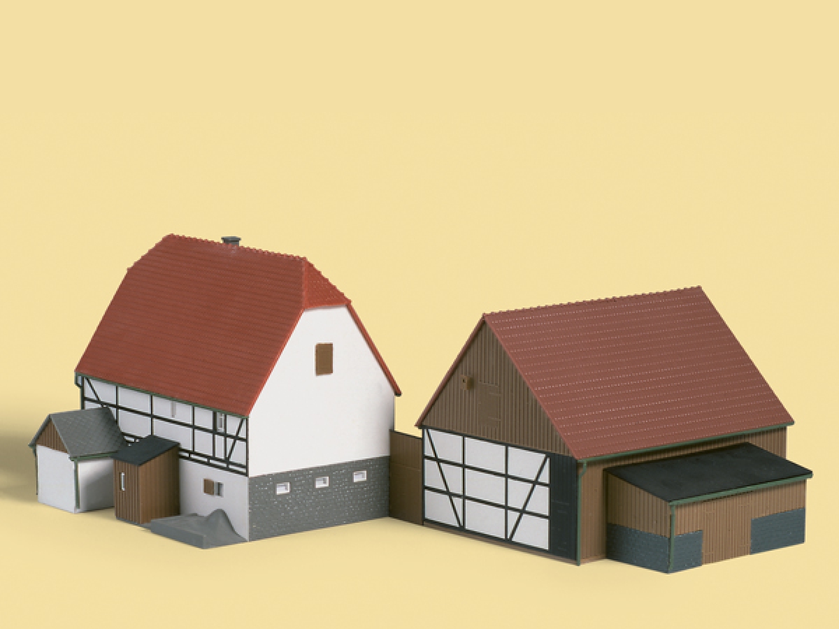 Das idyllische Anwesen nimmt auf Modellbahnanlagen und Dioramen wenig Platz in Anspruch. Alte Fotos und Erläuterungen des derzeitigen Besitzers gewährleisten absolute Originaltreue. Im Hauptgebäude befanden sich der Stall, die Küche, Stuben und Kammern. Der gemauerte Anbau an der Hinterfront war einst das Backhaus, das Holzhäuschen ist noch heute das Klo. Das Schiebetor an der Scheune ist auch im Modell beweglich. Viel Romantik steckt in diesen Gebäuden. Sie erzählen aber auch von der entbehrungsreichen Landarbeit, die uns Hochachtung abgewinnt. Originalmodell 128 x 80 x 110 mm 130 x 90 x 90 mm Gesamtfläche 280 x 210 mm.