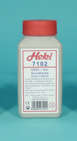 HEKI dur Modelle erhalten Ihr finish durch die farbliche Gestaltung mit HEKI dur Farben. Sie erhalten die beiden Grundfarben „Sandstein“ und „Granit“ und eine dunkle „Lasurfarbe“. Zunächst wird je nach gewünschtem Farbton eine der Grundfarben deckend aufgetragen. Nachdem der Grundanstrich getrocknet ist, wird alles mit Lasurfarbe überstrichen und mit einem nassen Schwamm sofort wieder abgewischt. Farbreste der Lasur bleiben dabei nur in den Vertiefungen und bewirken den Effekt gealterten Mauerwerks. In gleicher Vorgehensweise gelingen mit den HEKI dur Farben auch die Lasurarbeiten an Gebirgen.