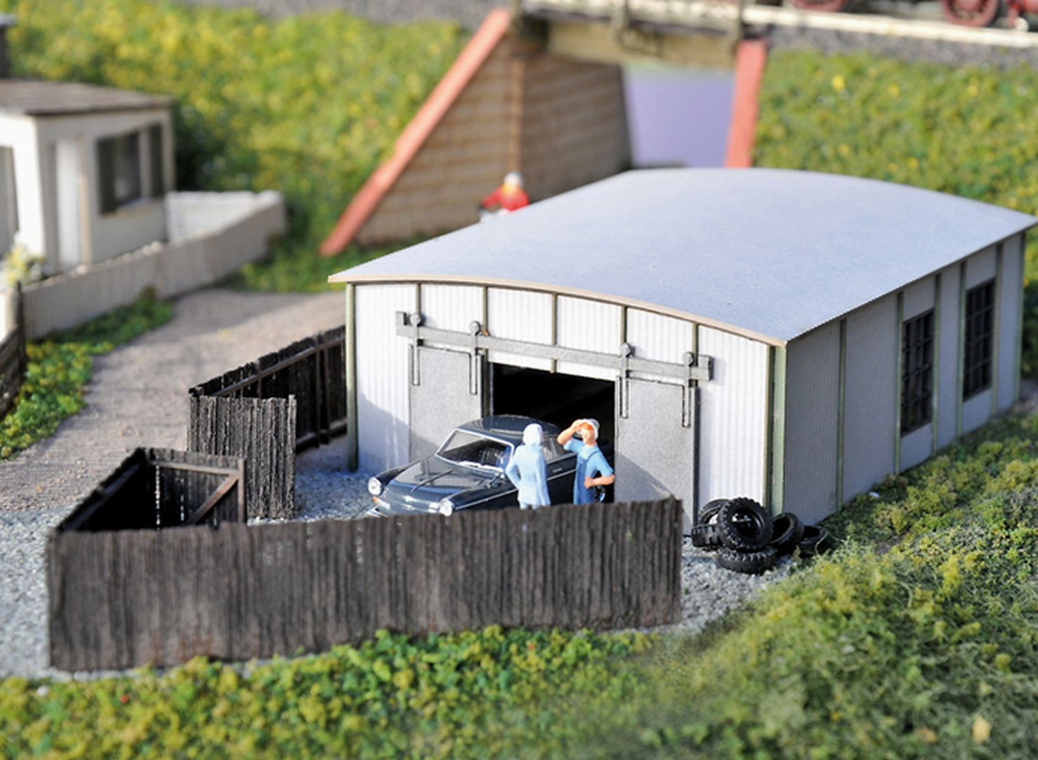 Wellblechschuppen, Bausatz H0 (1:87), Maße in mm: Länge 92, Breite 72, Höhe 36 Spur HO