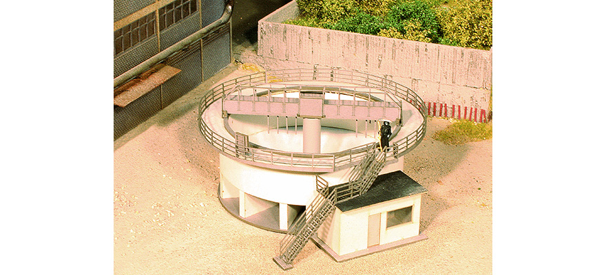Kläranlage zur Trennung von Flüßigkeiten und Schwebestoffen. Wird nicht nur in Klärwerken, sondern auch in vielen industriellen Bereichen wie z. B. Hochöfen und Zechen benötigt