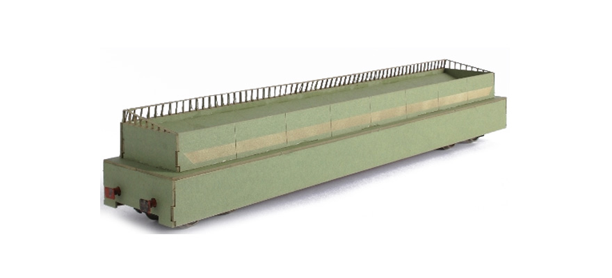 Das fertige Modell passt auf jeden UIC Güterwagen Rs mit 19,9m Vorbildlänge aus dem Trix/Märklin Programm (gehört nicht zum Lieferumfang).