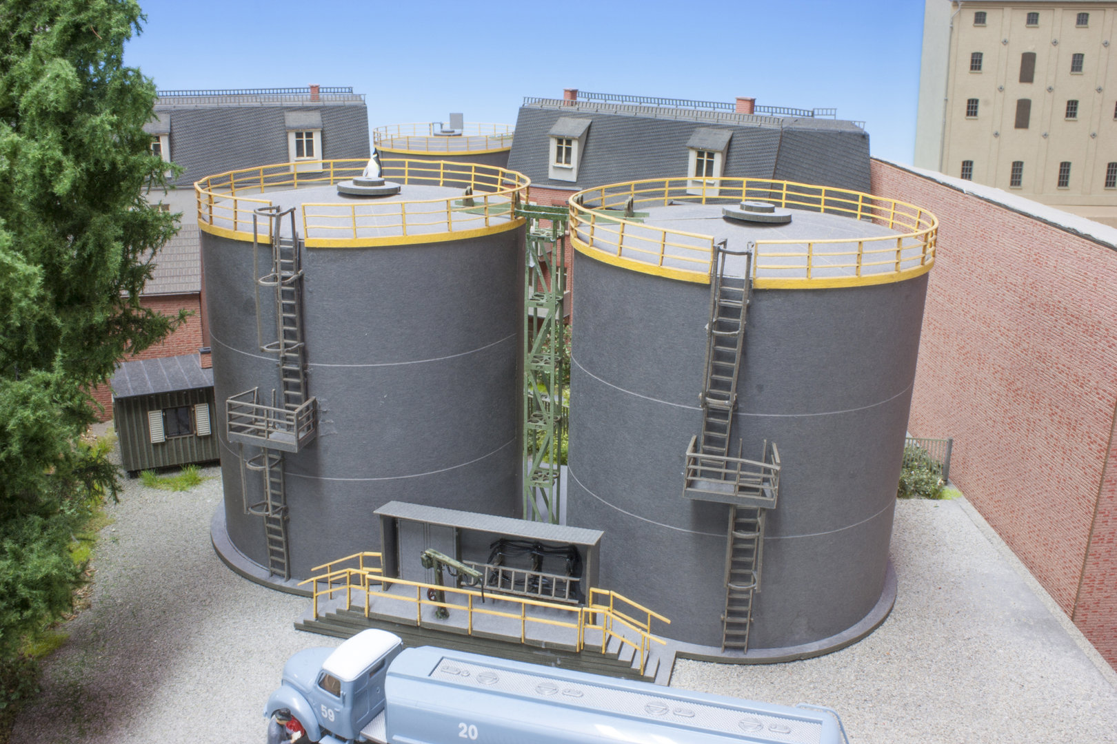 bestehend aus 2 großen Tanks mit einer Verladungsbühne, solche Anlagen sind in der Industrie überall zu finden, passen aber auch gut an die