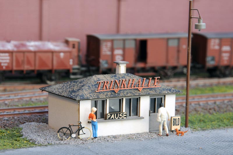 Diese kleinen Häuschen waren früher, und sind es zum Teil noch heute, überall zu finden, oft in der Nähe von Fabrik-Eingängen und Bahnhöfen. Spur HO 1:87