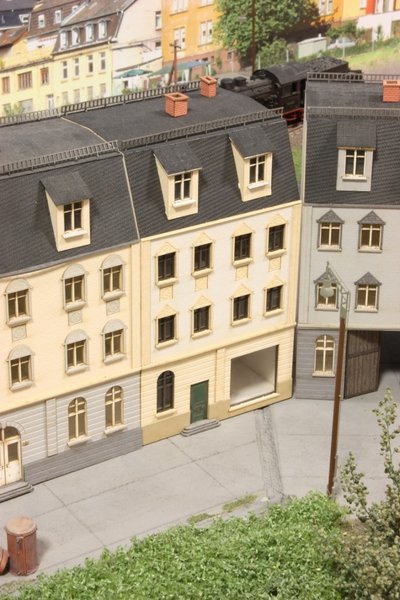 Bausatz HO (1:87), Stuckverzierungen Strassenseite, Hinterhofseite schlicht, unterteilte Räume
