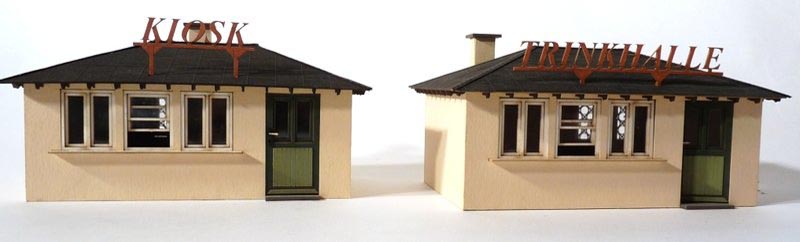 Diese kleinen Häuschen waren früher, und sind es zum Teil noch heute, überall zu finden, oft in der Nähe von Fabrik-Eingängen und Bahnhöfen. Für ganze Regionen wie das Ruhrgebiet waren und sind sie alles auf einmal: Treffpunkt, Versorgungslädchen, Infobörse und Kummerkasten. Für viele Menschen ist die Trinkhalle oder der Kiosk mit Flaschenverkauf Mittelpunkt des sozialen Lebens in der Pause oder Freizeit. ÜBRIGENS, der Schriftzug "Trinkhalle" bzw. "Kiosk" kann wahlweise auf dem Dach des Bausatzes angebracht werden. Beide Schriftzüge liegen dem Bausatz bei.