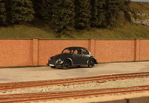 Gartenmauer in aufwendiger 3D Ziegelgravur, bestehend aus 4 Mauerelementen inklusive Pfeiler jeweils ca. 125mm lang.