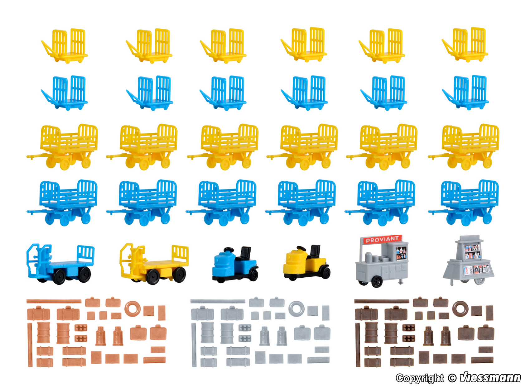Bausatz. Spur N Verschiedene Gepäckkarren und Zugmaschinen. Schwierigkeitsgrad: 2 (Fortgeschrittene).