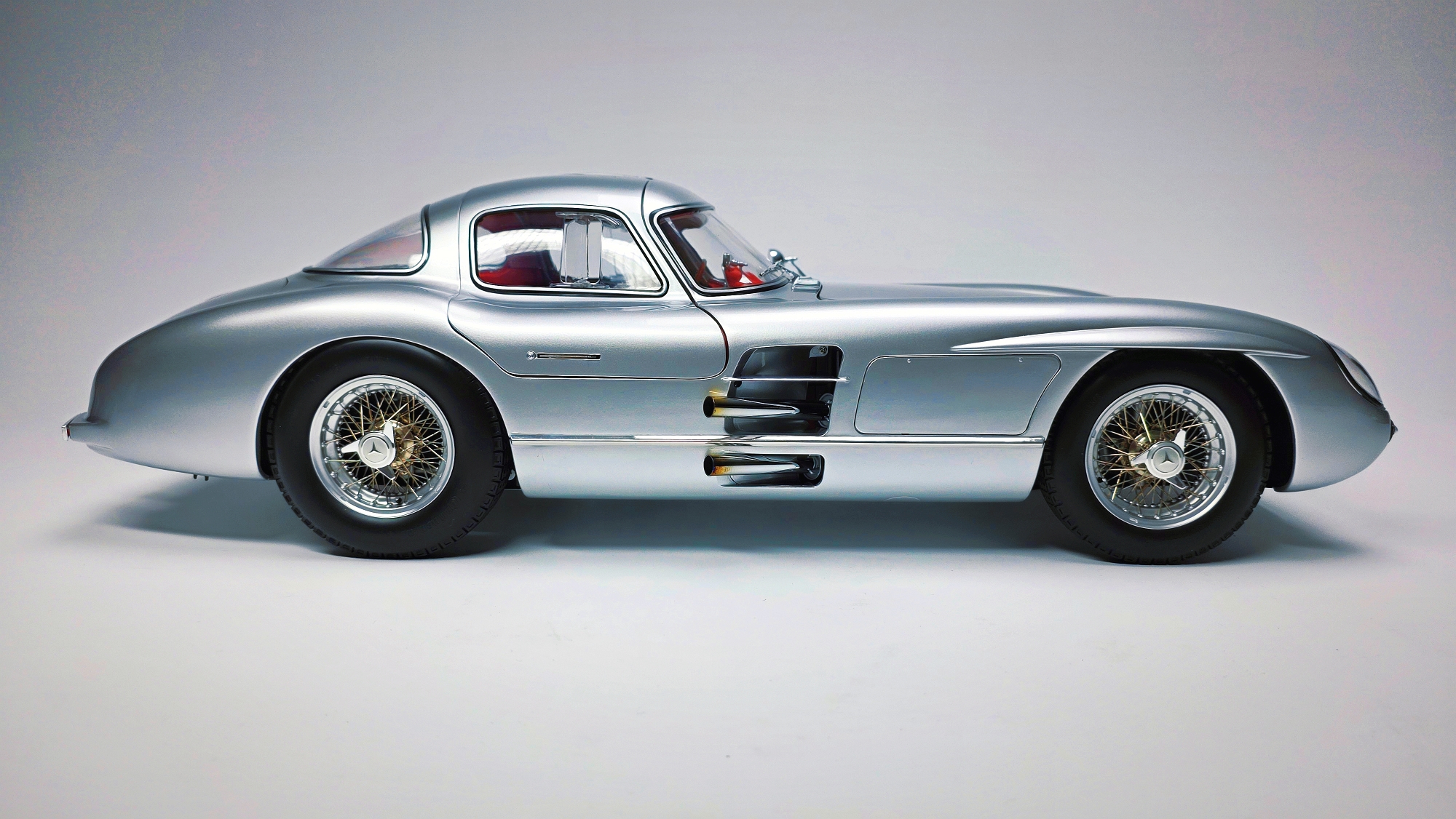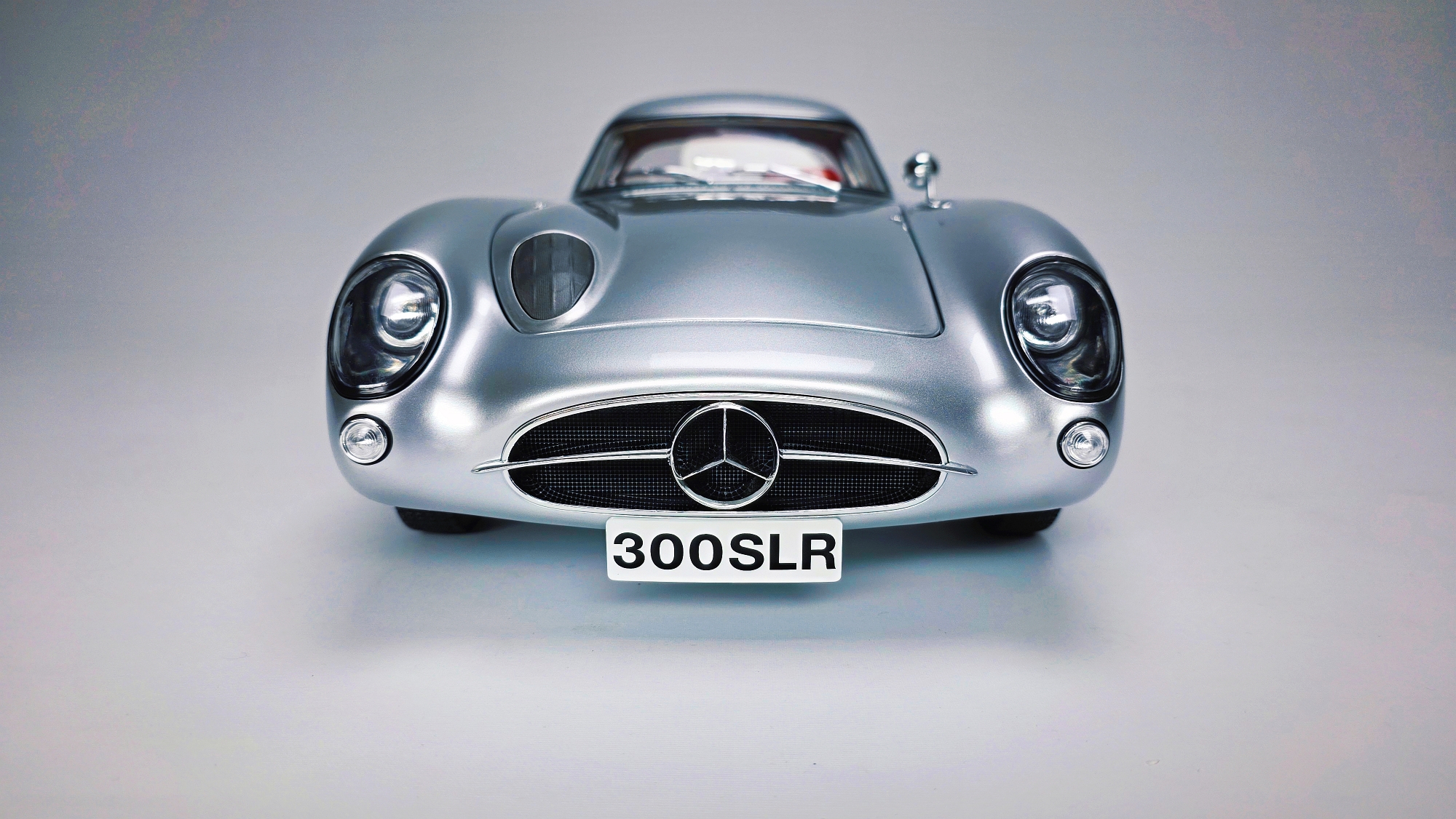 Das Original: Diese Coupé Version des Rennsportwagens 300 SLR hatte Daimler-Benz für die Saison 1956 entwickelt. Es wurde unter Aufsicht des damaligen Leiters der MB-Rennwagenabteilung Rudolf Uhlenhaut konstruiert. Daran erinnert heute der Beiname „Uhlenhaut-Coupé“. Es kam jedoch nie zum Renneinsatz, weil Mercedes Benz im Jahr 1955 nach Saisonabschluss aus dem Motorsport ausstieg. Der MB 300 SLR ist einer der spektakulärsten und teuersten Supersportwagen, die je gebaut wurden und war seiner Zeit schon damals weit voraus.