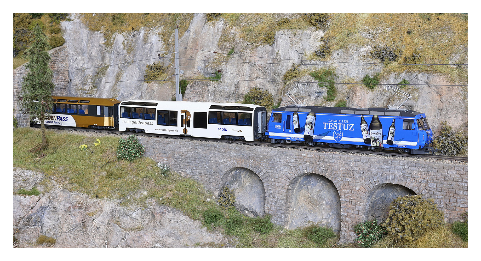 Die MOB beteiligte sich bei Ihrer Suche nach einer leistungsfähigen Universallok mit der Westschweizer Meterspurbahn BAM an der Serienproduktion der RhB Ge 4/4 III und orderte ihrerseits vier Loks, angepaßt an den Betrieb unter Gleichspannungsfahrleitung. Die vier Ge 4/4 8001-8004 übernahmen den Expresszug-Verkehr zwischen Montreux und Zweisimmen und brachten Entspannung für die damals noch vier vorhandenen GDe 4/4 6001-6004. Nach einiger Zeit begann auch die MOB mit der Beklebung der Loks mit Werbefolien oder zu Eigenwerbezwecken.