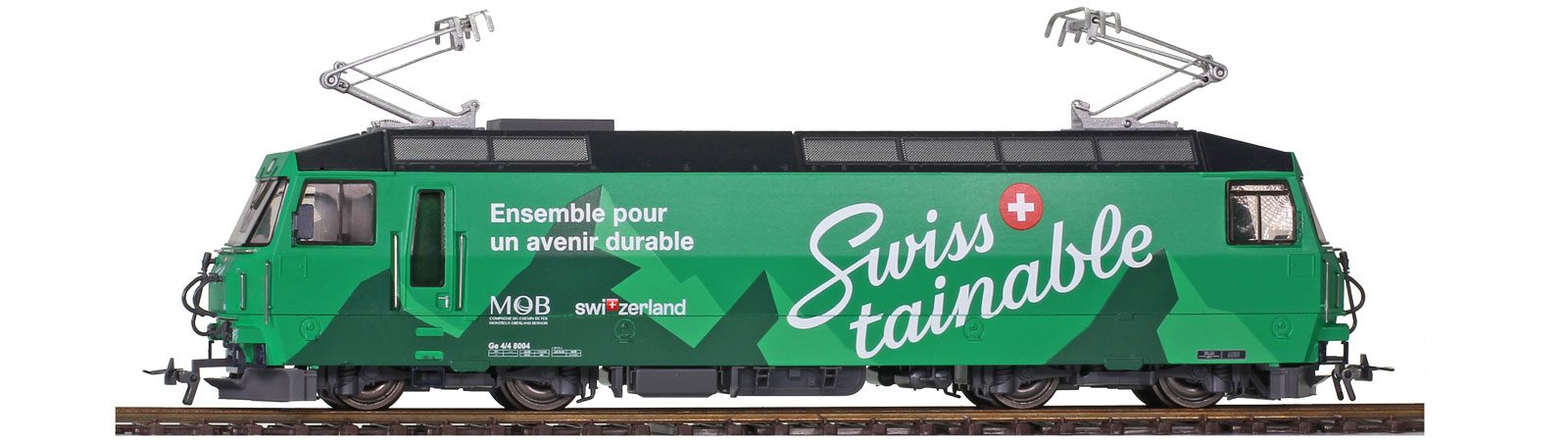ereits im letzten Sommer hat die MOB die Ge 4/4 8001 mit neuen Folien beklebt. Sie wirbt mit dem Slogan „Swisstainable“ für Schweiz Tourismus. Damit stehen drei verschiedenfarbige Loks Ge 4/4 8001, 8002 und 8004 für den „Golden-Pass Express“ (GPX) bereit.