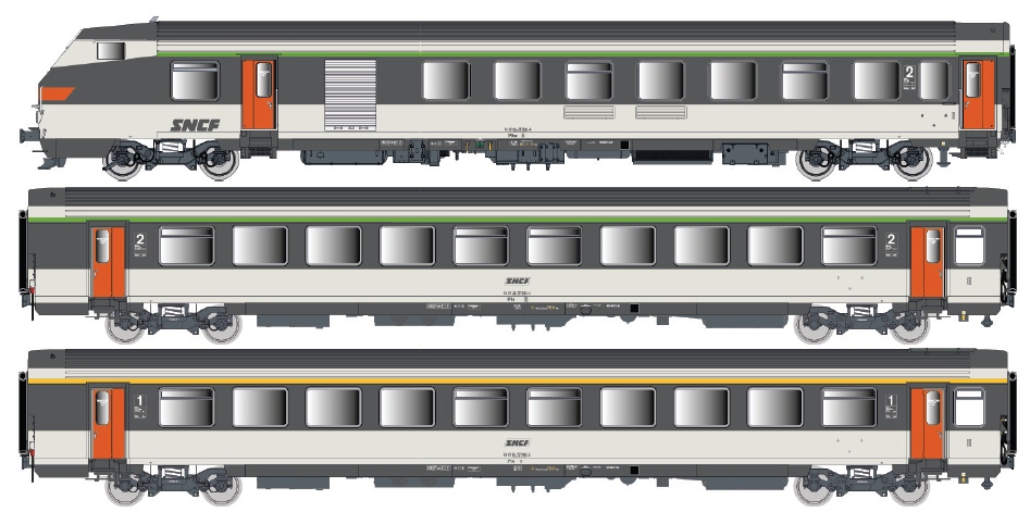LS Models 41254DC - Spur HO SNCF Reisezugwagen-Set Corail B6Dux/B11tu/A10tu, Ep. IV, 3-tlg.