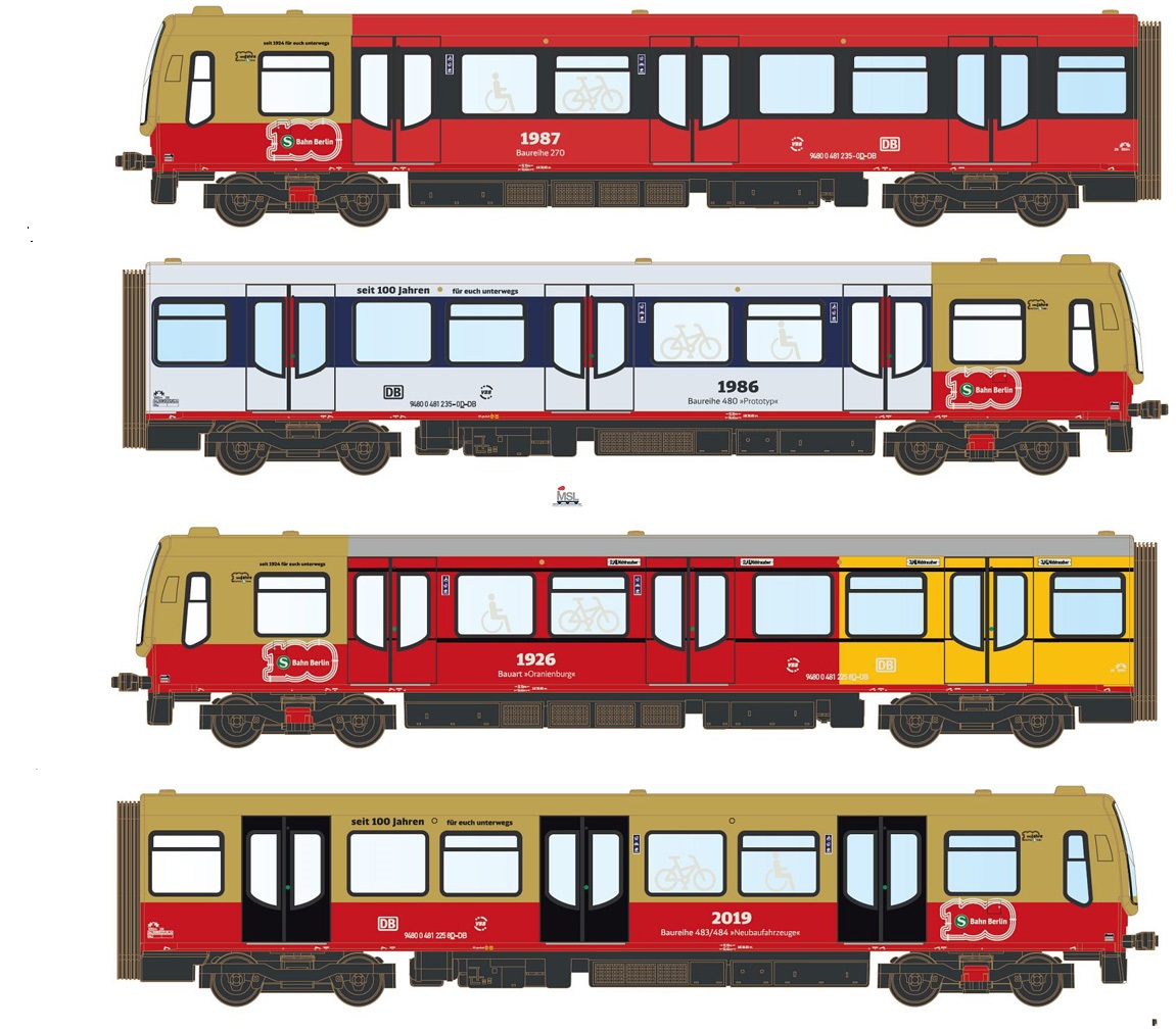 Display mit je 8x LC90486 und LC90487 – 2024 jährte sich das 100-jährigen Jubiläum der Berliner S-Bahn, wobei die Baureihe 481/482 eine wichtige Rolle spielte: Ein modernisierter Zug dieser Baureihe wurde mit Folierungen in verschiedenen historischen S-Bahn-Farben beklebt und als Jubiläumszug eingesetzt, um die Geschichte der S-Bahn zu repräsentieren.