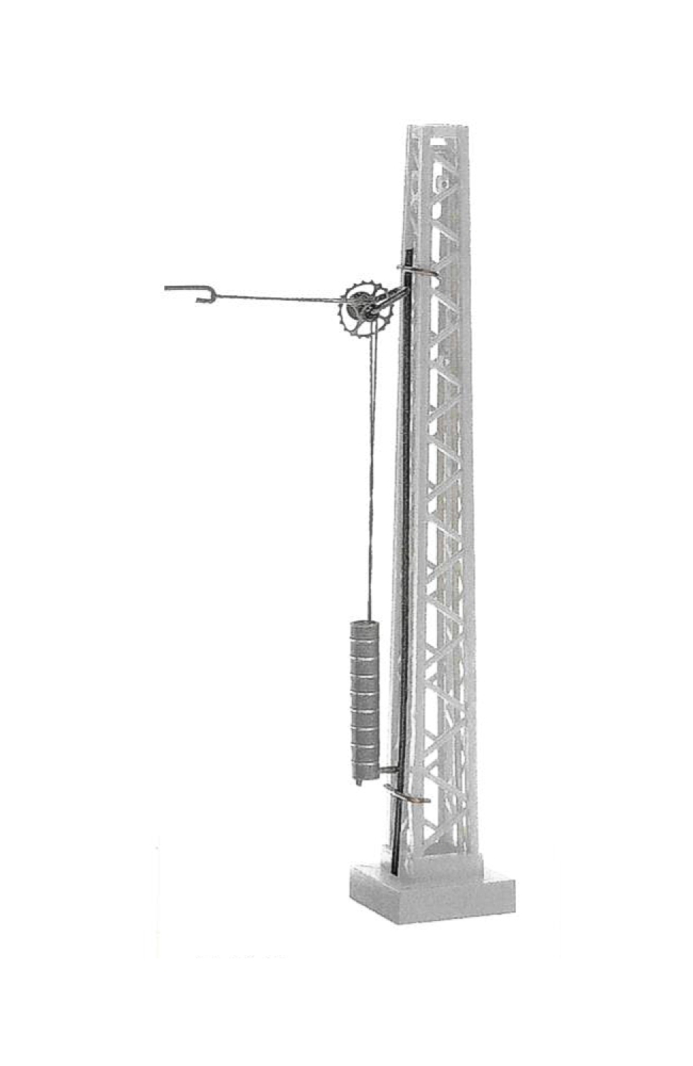 Zur Montage an Turmmasten; wie beim Vorbild mit voller Funktion zum Abspannen von Fahrdrähten. Spur N Die Befestigungsdrähte erlauben ein Schwenken des Spannwerks in Abspannrichtung.