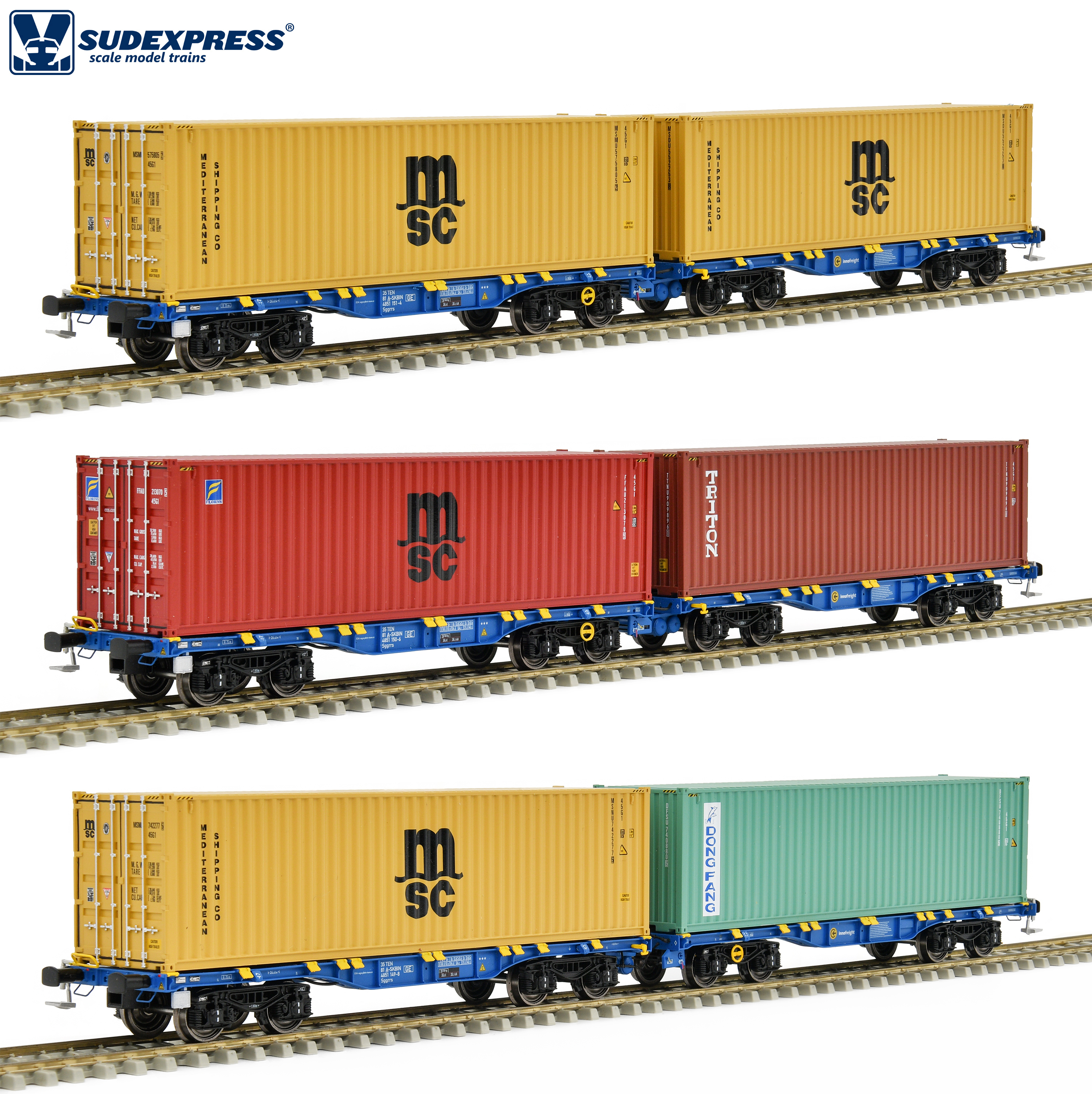 UIC-Nummer 3: 35 81 4851 149-8 A-SKBIN, Beladung: 40' HC "MSC" container + 40' HC "DONG FANG" container