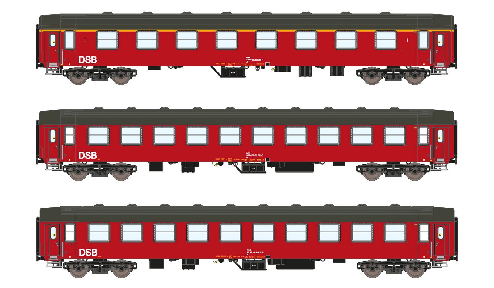 ASM 25001 - Spur N 3er Set Personenwagen UIC-Y, A+B+B DSB, Ep.IV