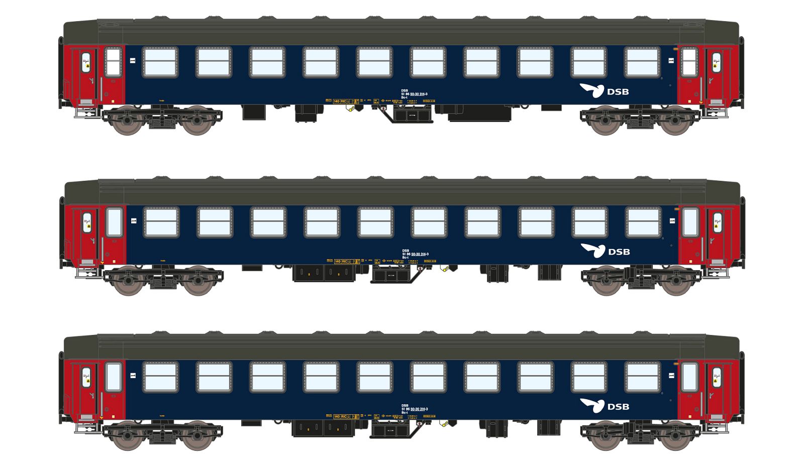 ASM 25003 - Spur N 3er Set Liegewagen UIC-Y, Bc DSB, Ep.IV-V