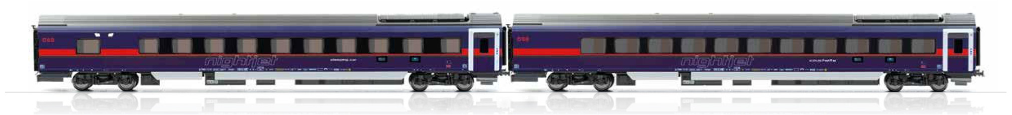 Jägerndorfer 71410 - Spur HO 2er Set Nachtzugwagen DANI ÖBB Nightjet, Ep.VI, Basic AC