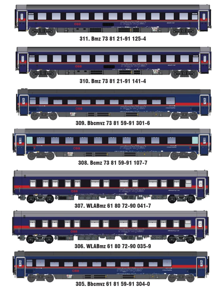 7er Set Nachtzugwagen der ÖBB Nightjet, E.pVI, DANI