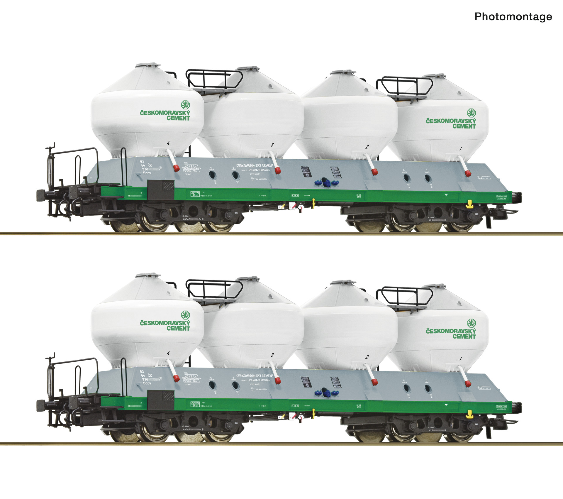 Wagenset mit zwei Silowagen, Gattung Uacs, der Ceskomoravsky Cement eingestellt bei den Tschechischen Staatsbahnen.