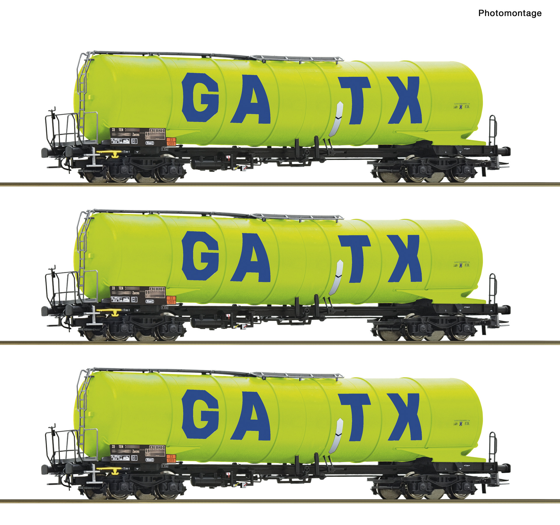 Wagenset mit drei 4-achsigen Kesselwagen, Gattung Zacns, der GATX.