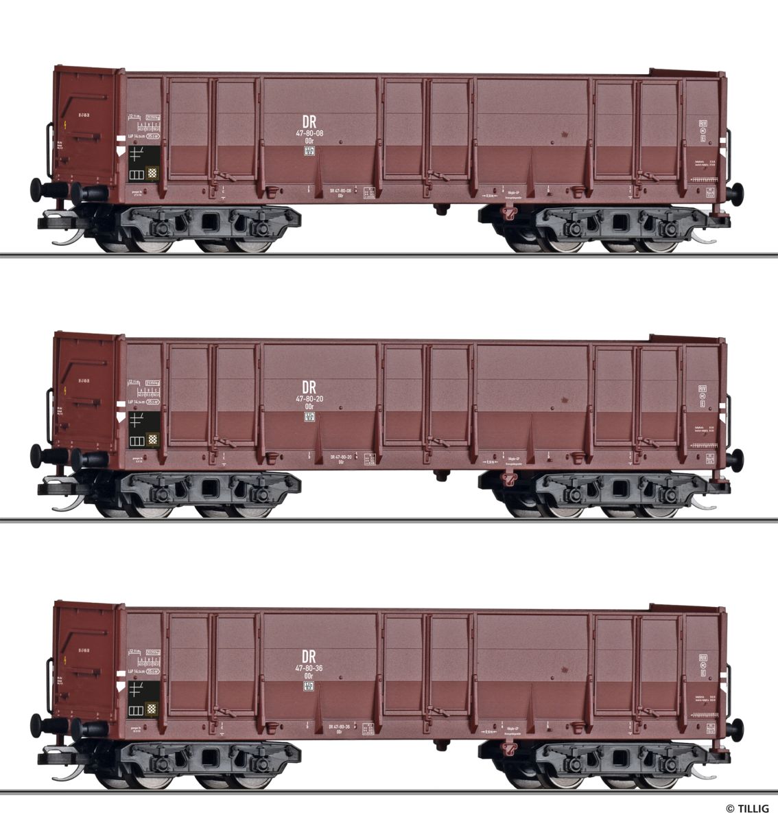 Tillig 01141 - Spur TT offene Güterwagenset Oor der DR