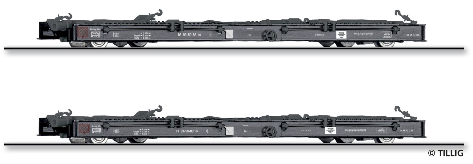 Tillig 05975 - Spur HOe 2er Set Rollwagenset (Rf4) der DR
