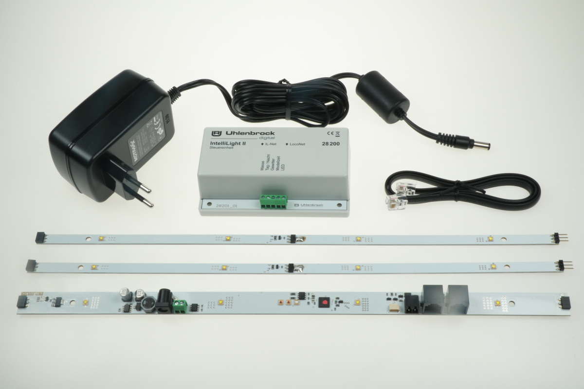 Steuereinheit Steckernetzteil, Hauptleuchtstab, 2 weiße Leuchtstäbe, Verbindungskabel.